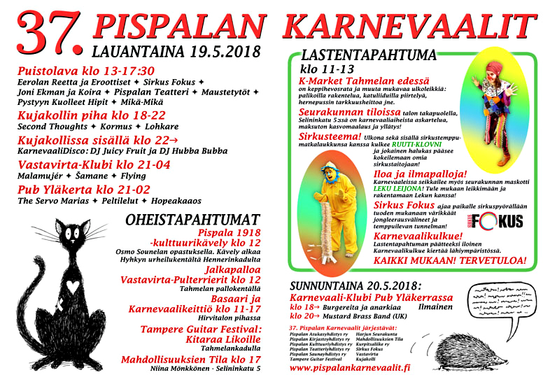 Pispalassa on juhlIttu keväisiä karnevaaleja jo vuodesta 1982. Aina tapahtumaan on kuulunut karnevaalien keskeiset elementit – musiikki, tanssi, teatteri, naamiot ja kulkueet, myyntikojut ja käsityöt, taide, nauru, aurinko, sade, tuuli ja välillä railakaskin kemuilu.