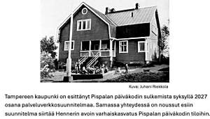 Perinteistä Pispalan päiväkotia uhkaa lakkauttaminen, ja ehkä myös Hennerin leikkitoimintakeskusta tai ainakin siirtoa pois historiallisesta paikastaan.